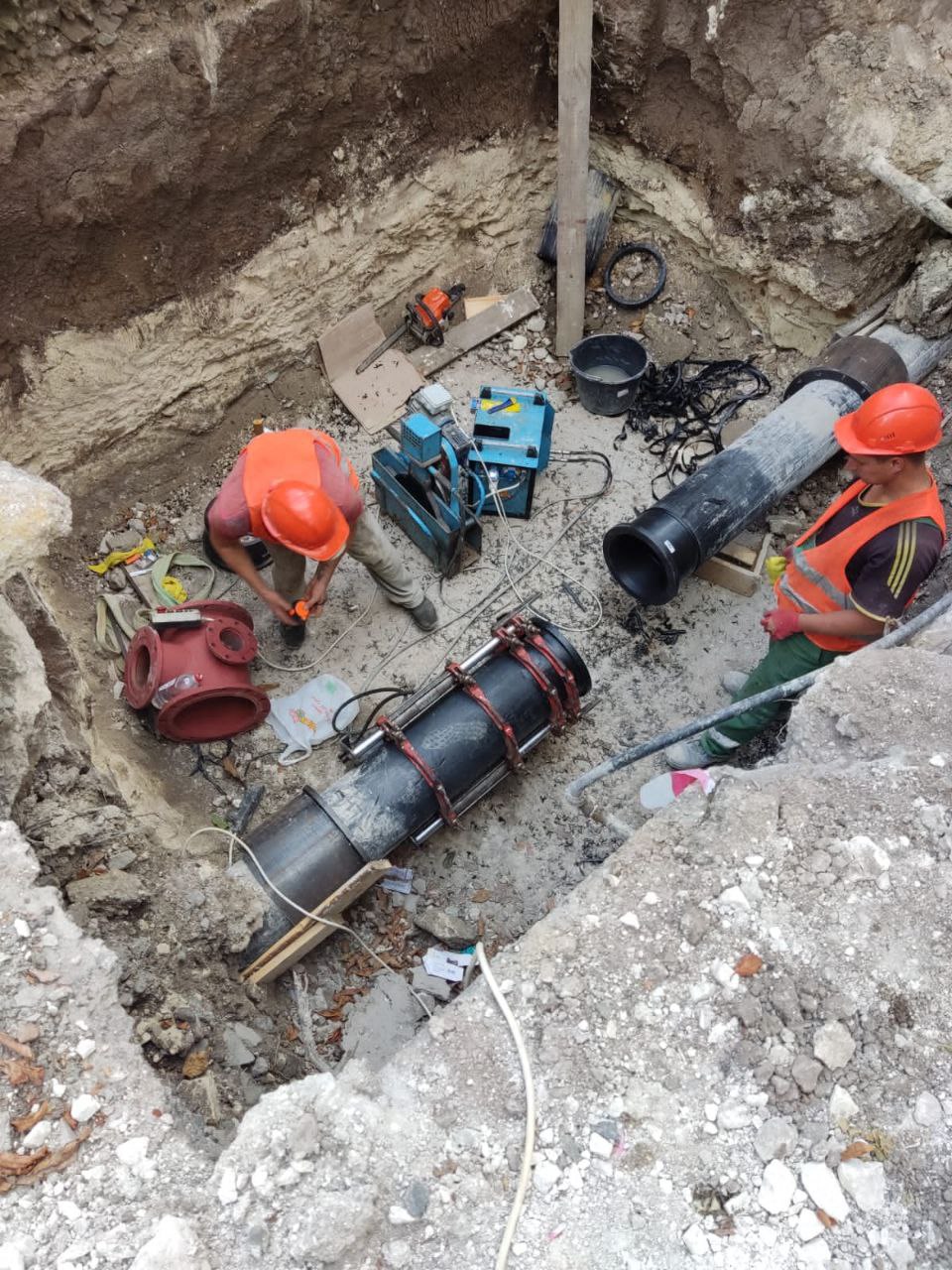 Монтаж бытового, промышленного, пожарного, оросительного или оборотного водопровода выполняется подземным траншейным или бестраншейным способом с использованием стальных или композитных труб и современной арматуры со строительством колодцев и резервуаров;